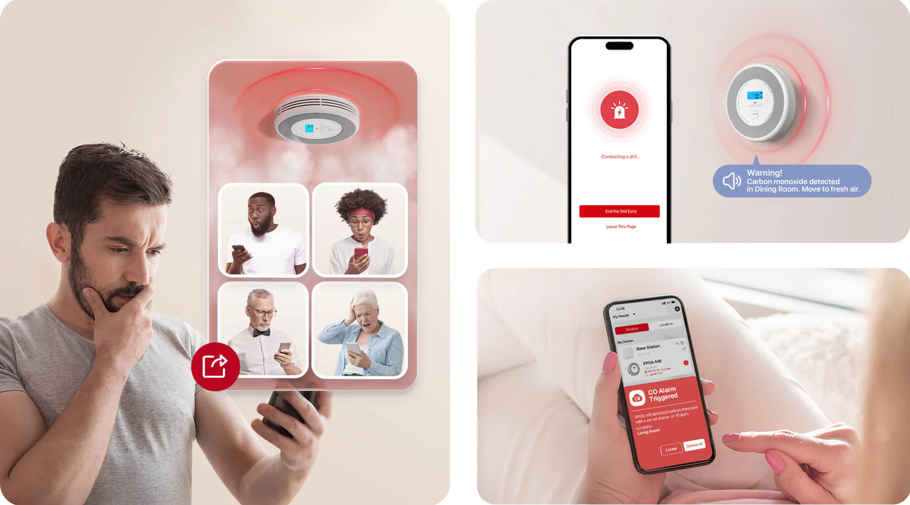 Smart Wi-Fi Functions with X-Sense App Stay connected and in control with the X-Sense app. Receive instant alerts on your phone when danger is detected or when the device's status changes. Share the alarm with up to 12 family members to keep everyone informed and manage your alarms remotely — no ladder needed! |